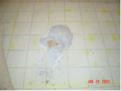 Hiding under a rug in the middle of the kitchen floor was an extremely damaged area of wood rot. The same damage was found in the laundry room. They buyer was unaware of the damage until an inspector discoverd it.
